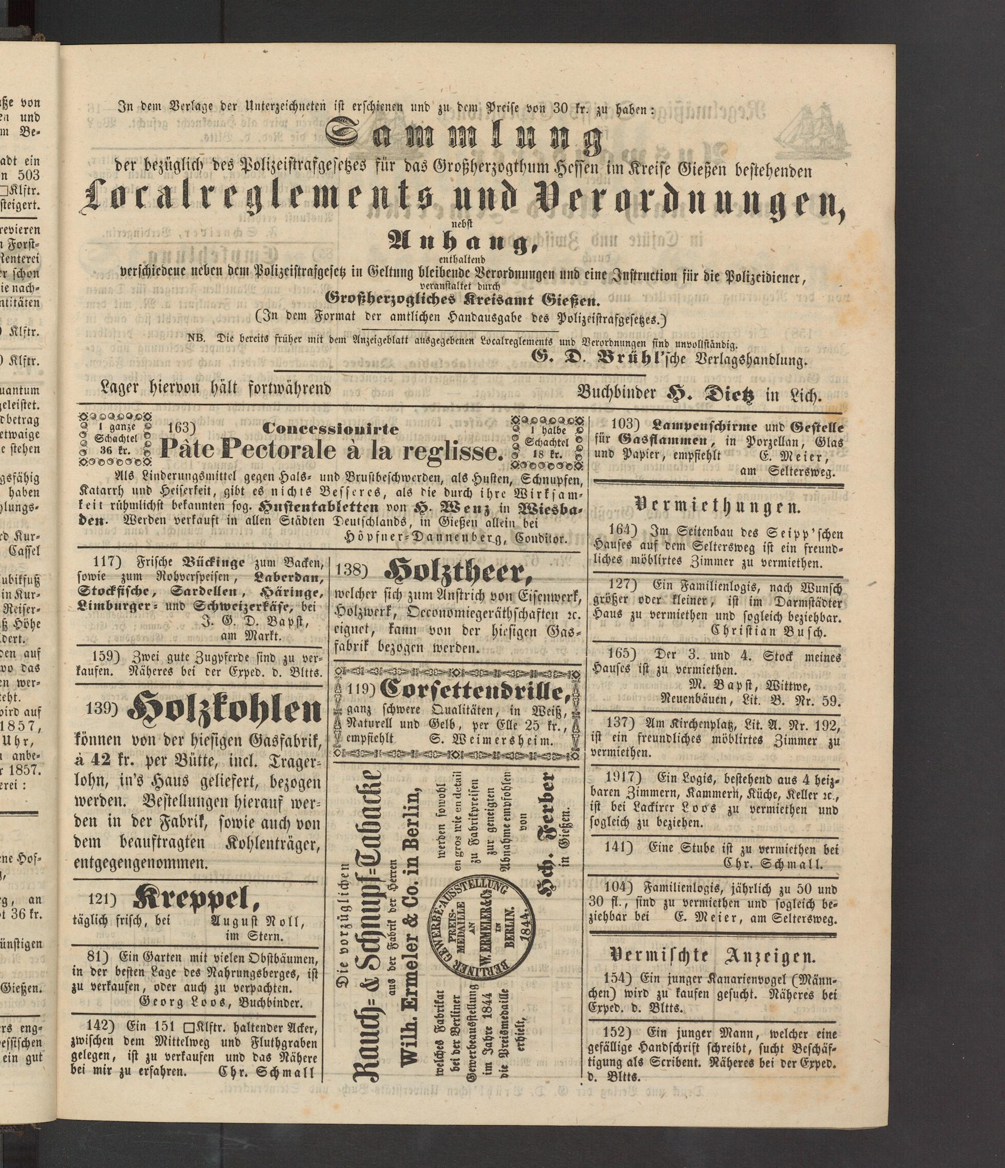 Anzeigeblatt für die Provinzialhauptstadt Gießen. 1840-1867