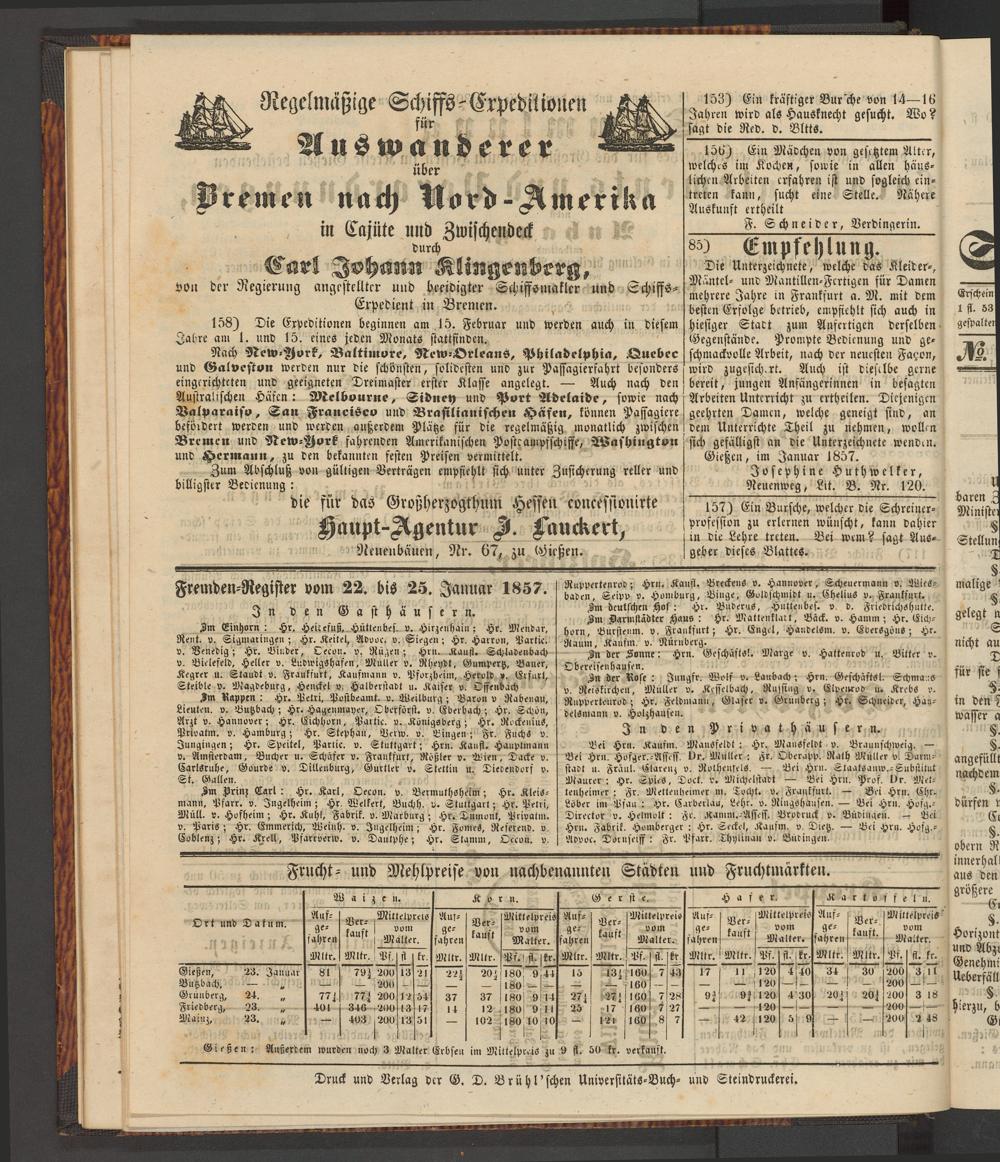Anzeigeblatt für die Provinzialhauptstadt Gießen. 1840-1867