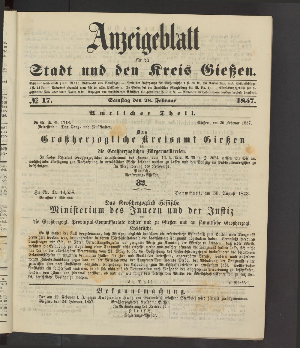 Anzeigeblatt für die Provinzialhauptstadt Gießen. 1840-1867