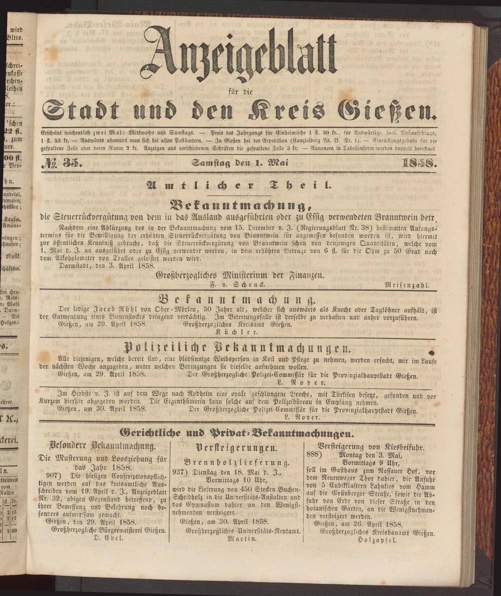 Anzeigeblatt für die Provinzialhauptstadt Gießen. 1840-1867