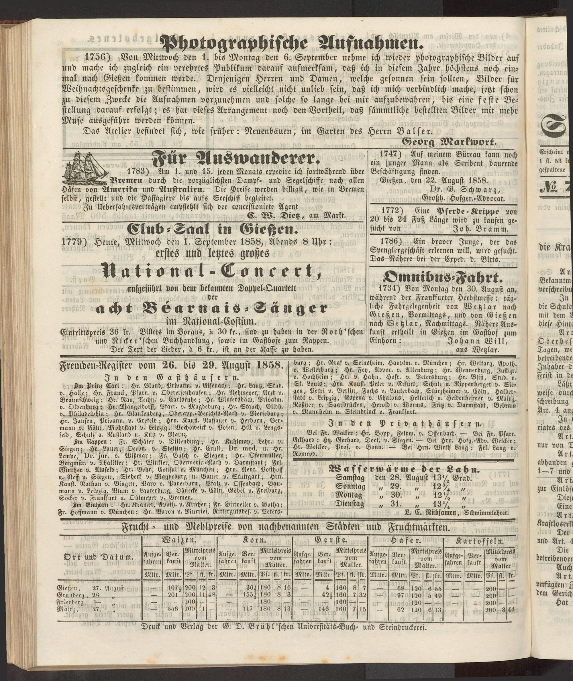 Anzeigeblatt für die Provinzialhauptstadt Gießen. 1840-1867