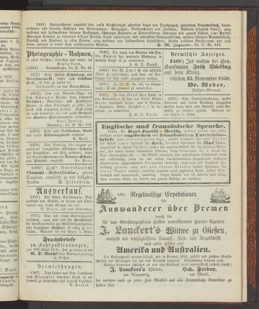 Anzeigeblatt für die Provinzialhauptstadt Gießen. 1840-1867