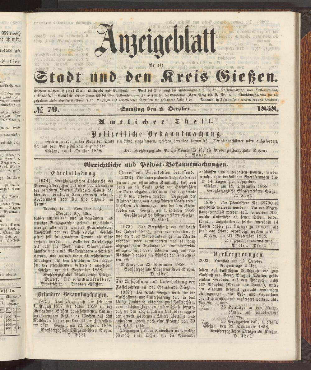 Anzeigeblatt für die Provinzialhauptstadt Gießen. 1840-1867