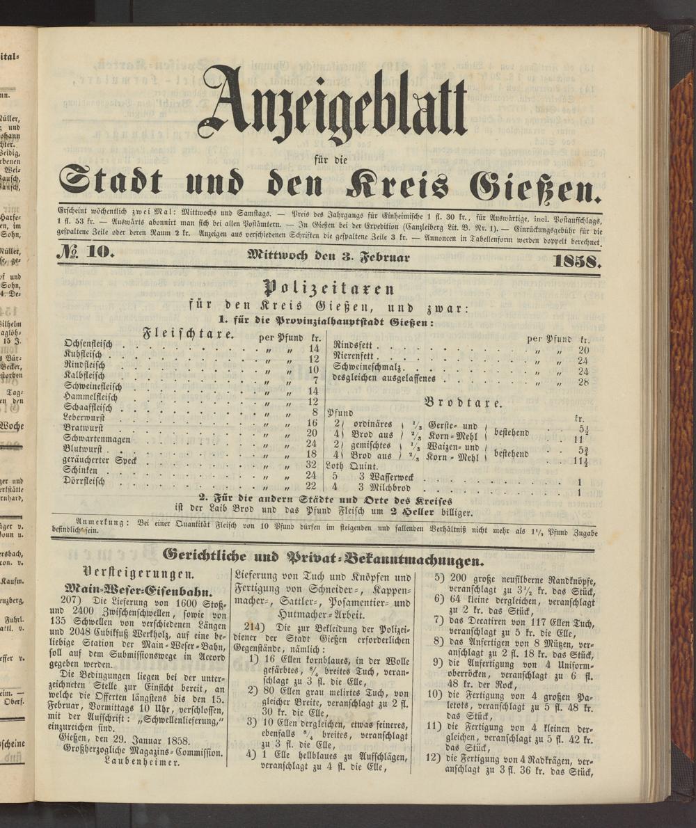 Anzeigeblatt für die Provinzialhauptstadt Gießen. 1840-1867