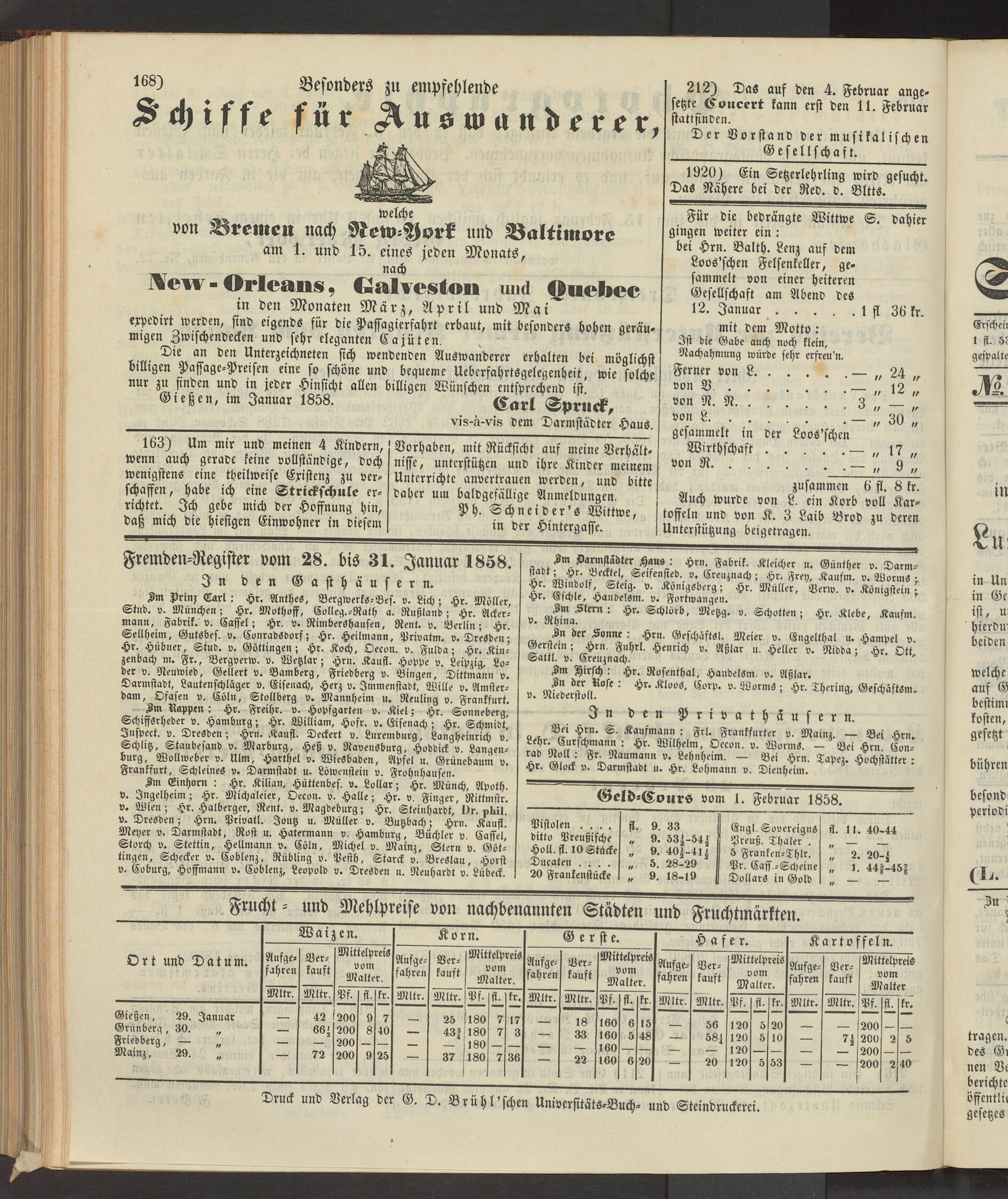 Anzeigeblatt für die Provinzialhauptstadt Gießen. 1840-1867