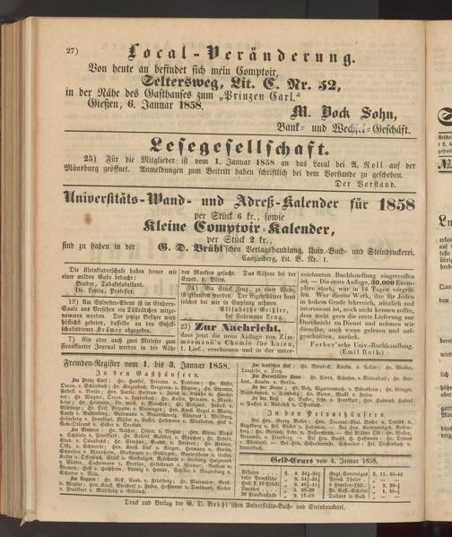 Anzeigeblatt für die Provinzialhauptstadt Gießen. 1840-1867