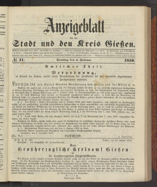 Anzeigeblatt für die Provinzialhauptstadt Gießen. 1840-1867