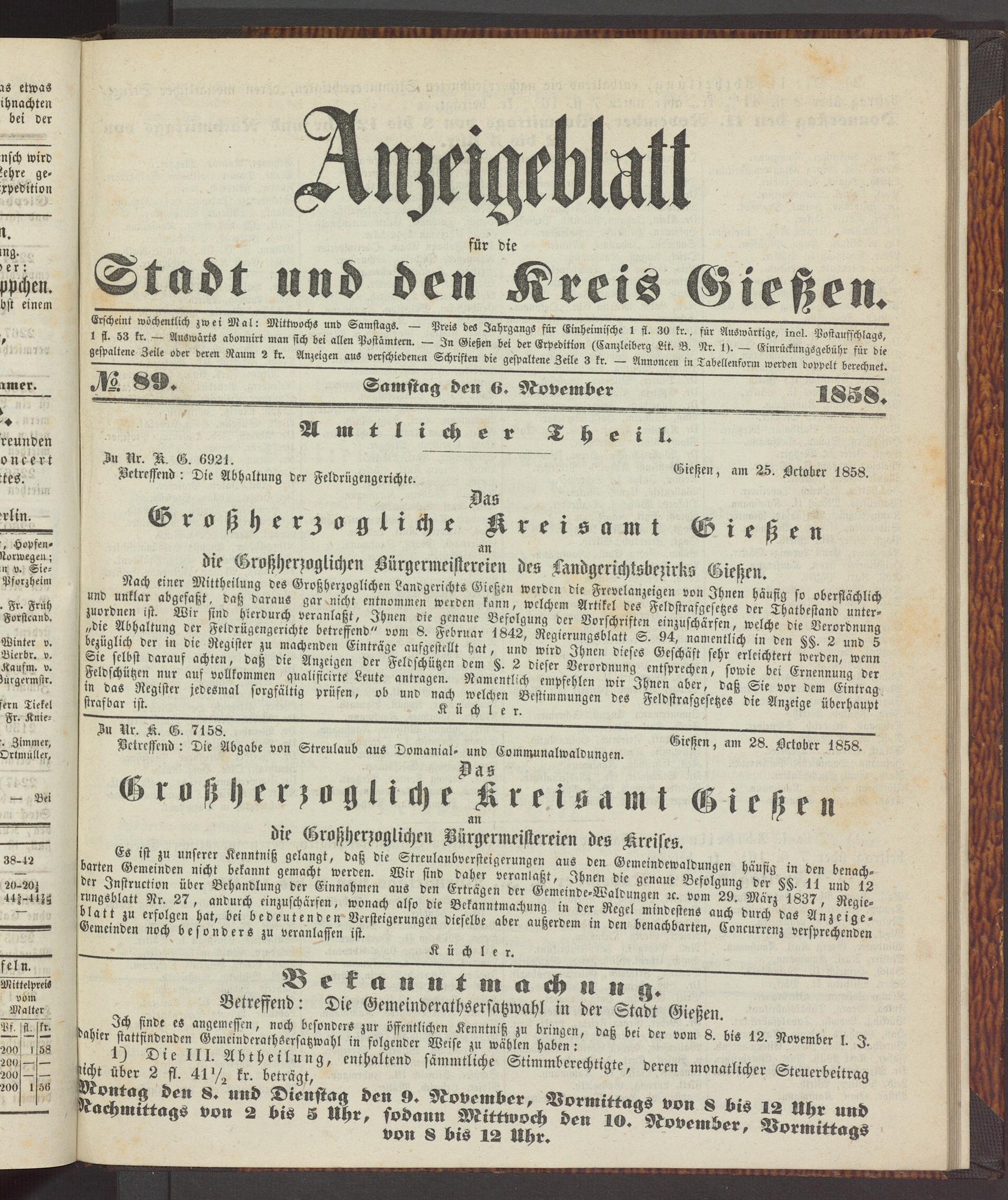 Anzeigeblatt für die Provinzialhauptstadt Gießen. 1840-1867
