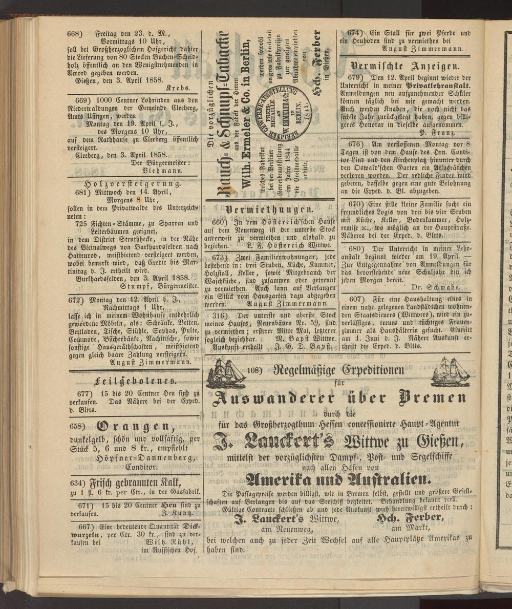 Anzeigeblatt für die Provinzialhauptstadt Gießen. 1840-1867