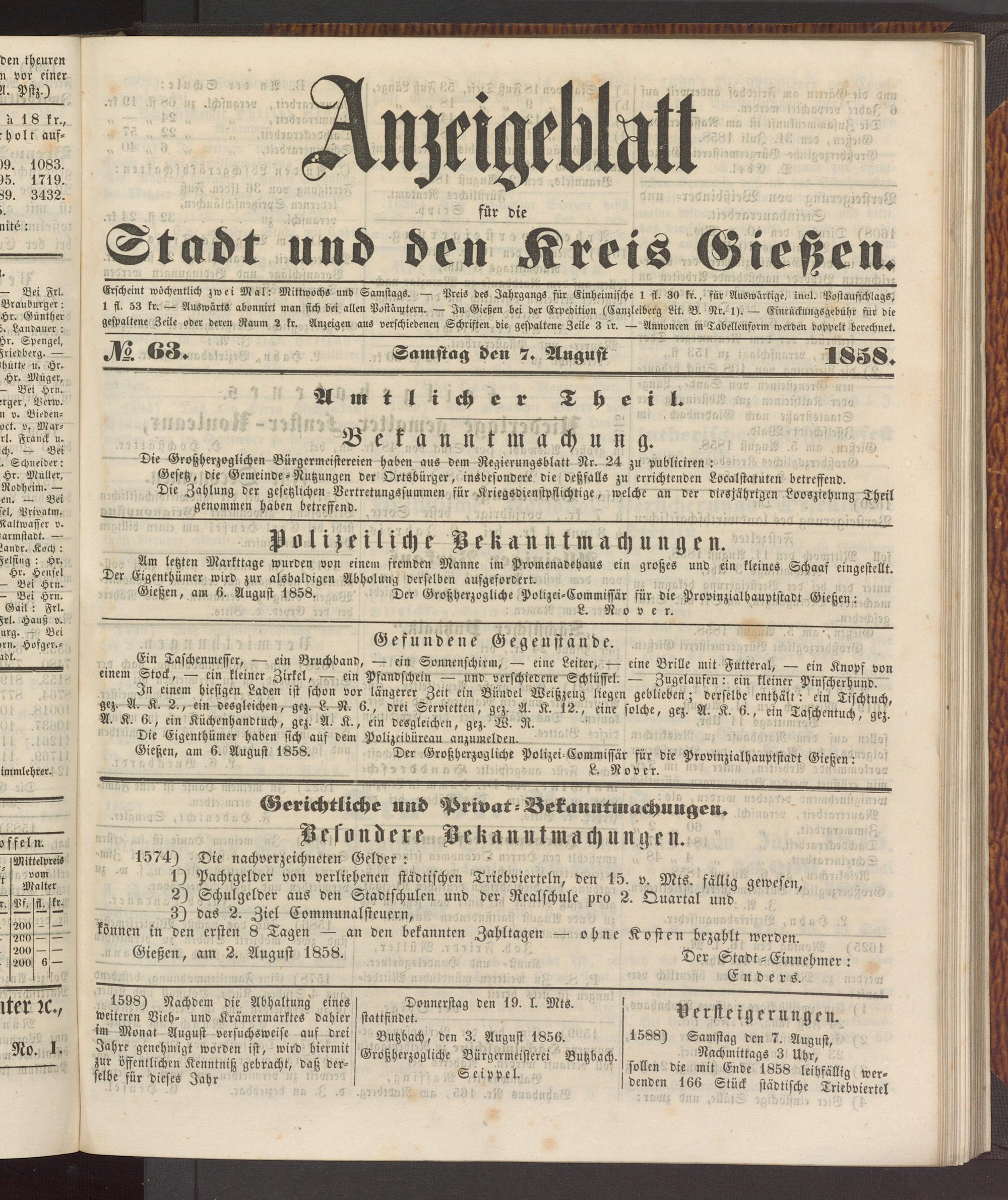 Anzeigeblatt für die Provinzialhauptstadt Gießen. 1840-1867