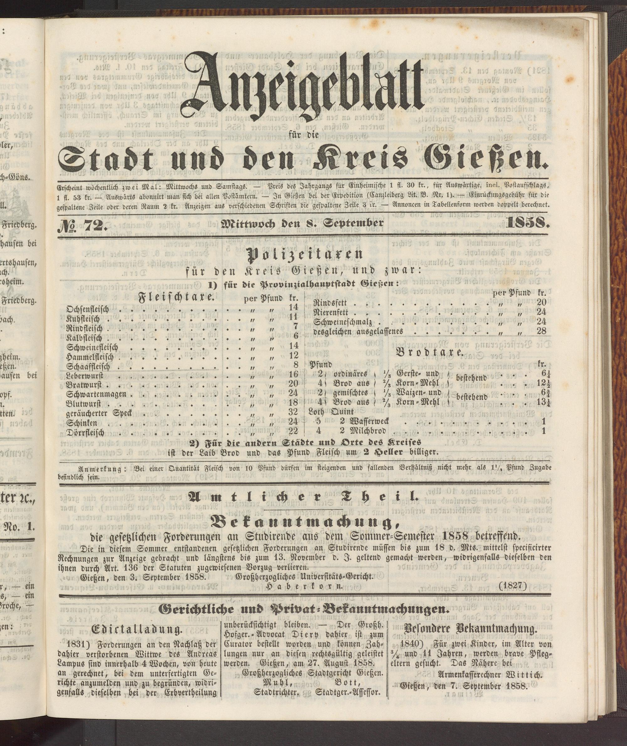 Anzeigeblatt für die Provinzialhauptstadt Gießen. 1840-1867