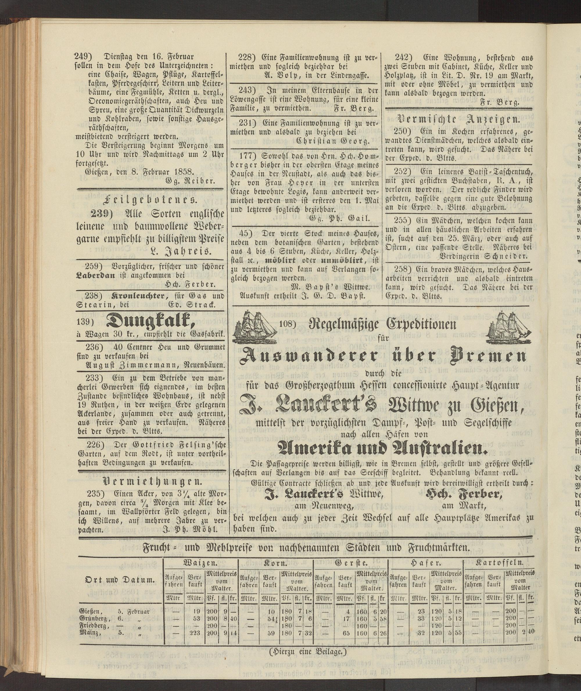 Anzeigeblatt für die Provinzialhauptstadt Gießen. 1840-1867