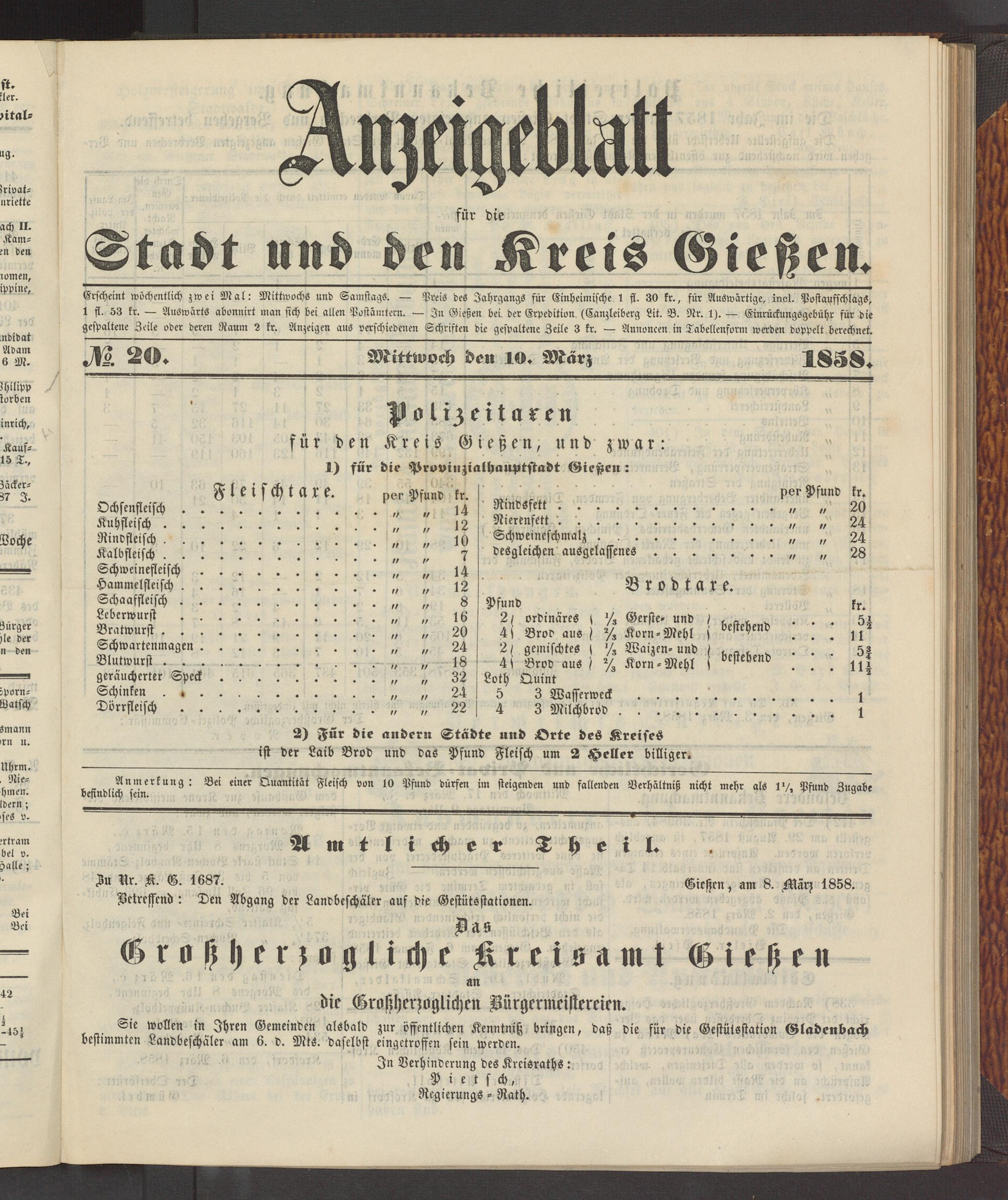 Anzeigeblatt für die Provinzialhauptstadt Gießen. 1840-1867