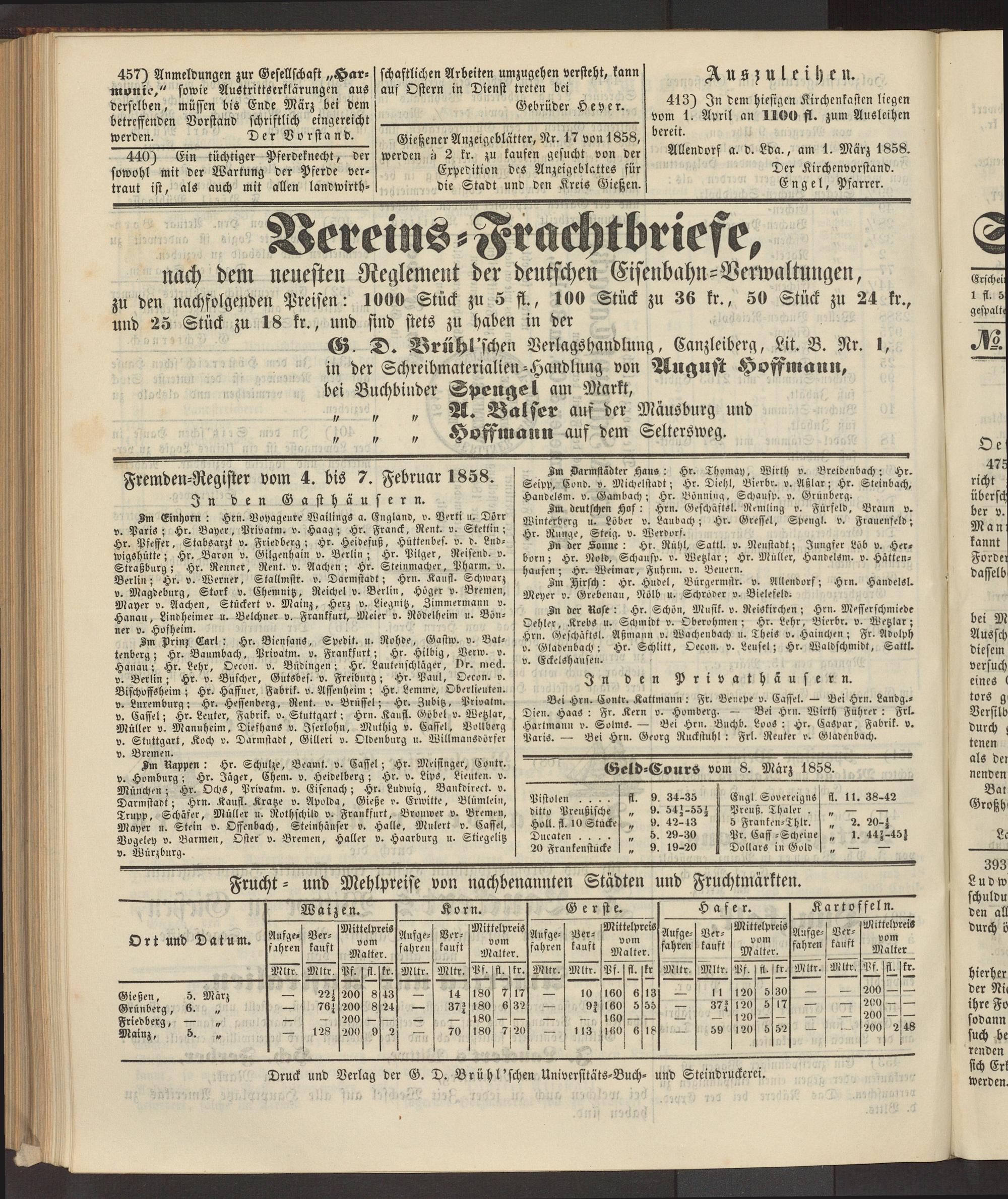 Anzeigeblatt für die Provinzialhauptstadt Gießen. 1840-1867