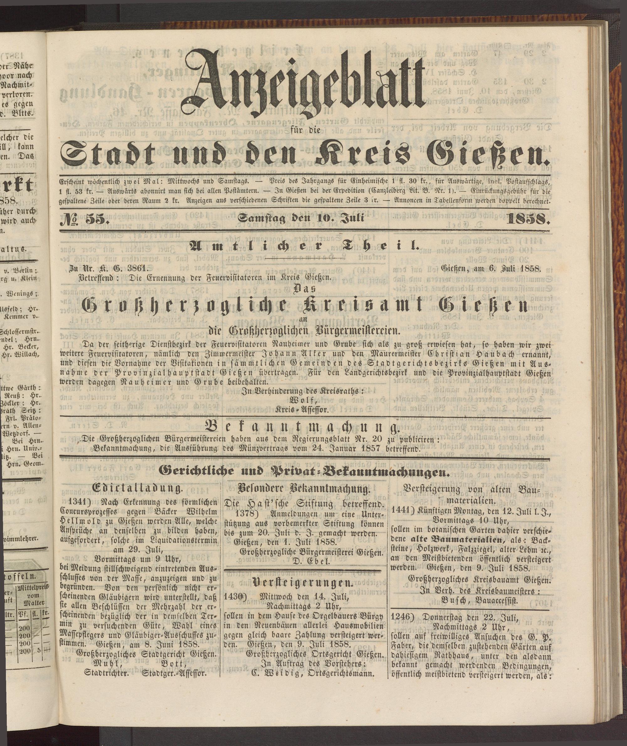 Anzeigeblatt für die Provinzialhauptstadt Gießen. 1840-1867
