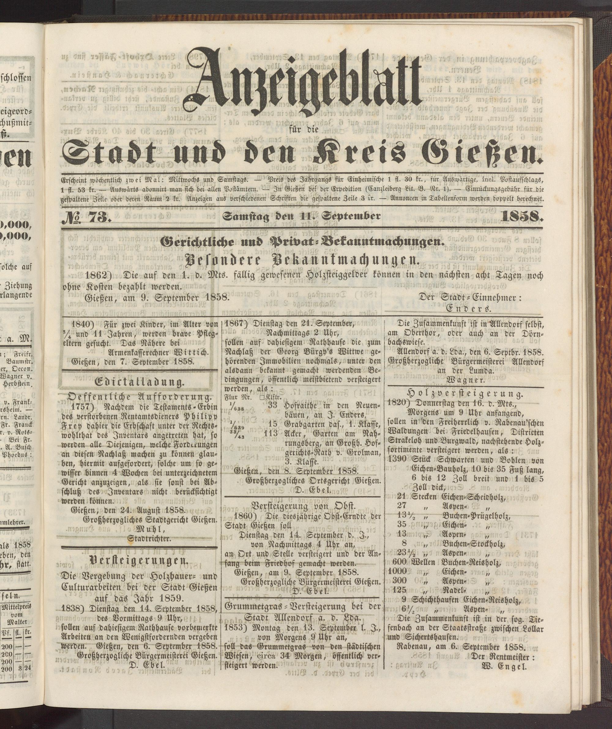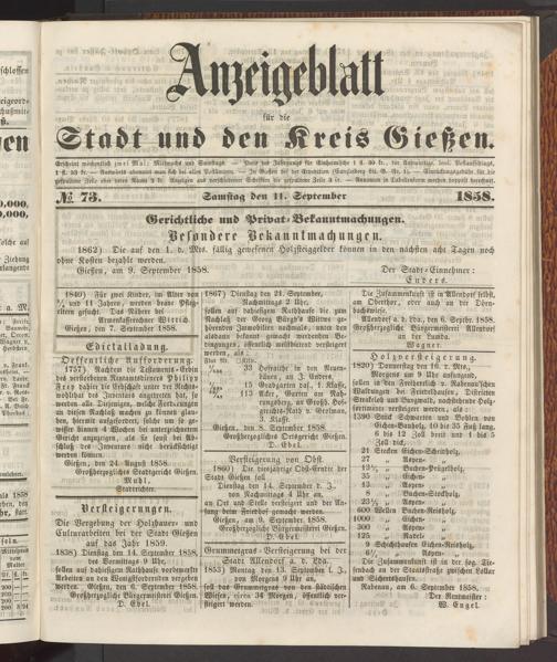 Anzeigeblatt für die Provinzialhauptstadt Gießen. 1840-1867