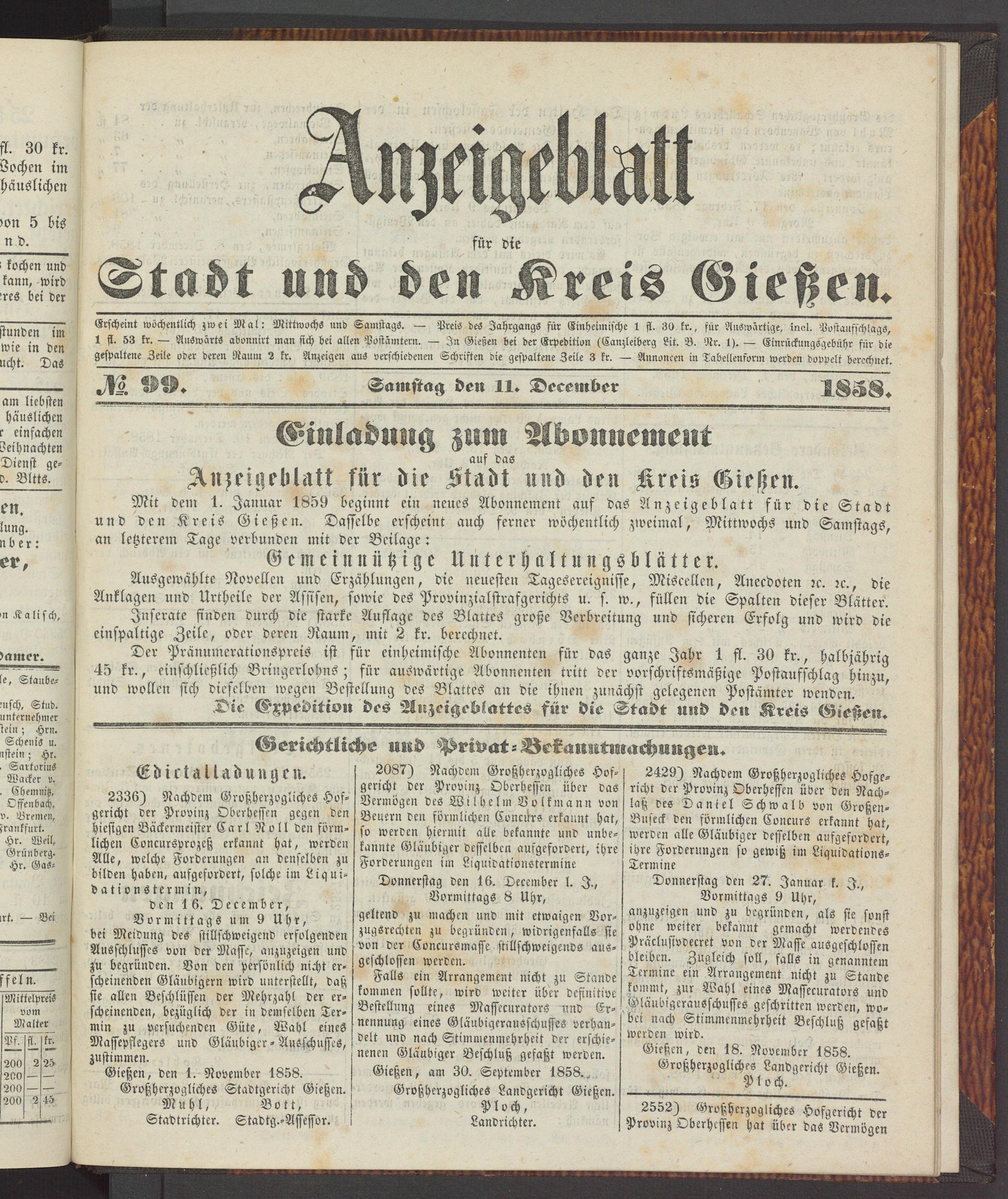 Anzeigeblatt für die Provinzialhauptstadt Gießen. 1840-1867