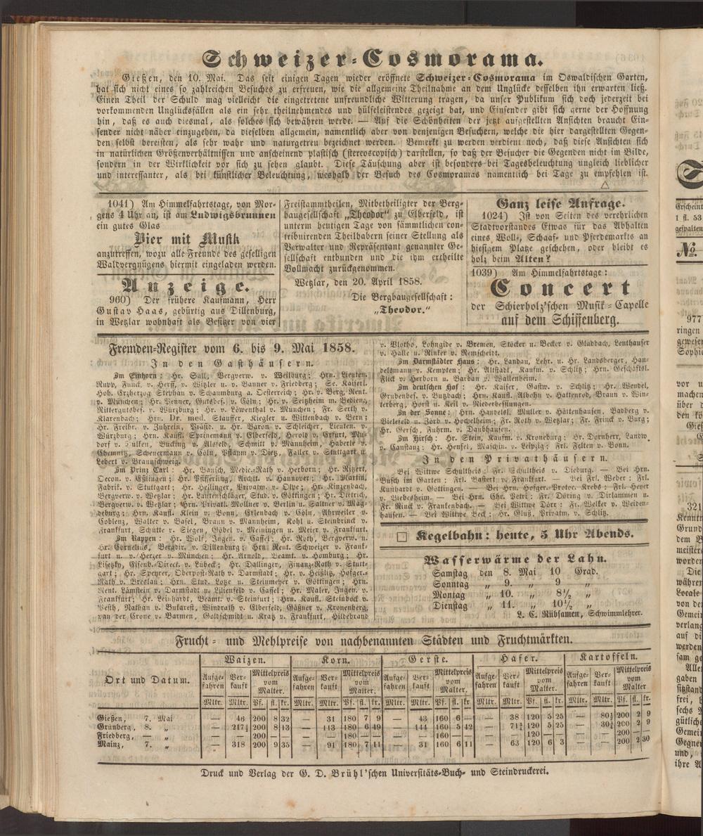 Anzeigeblatt für die Provinzialhauptstadt Gießen. 1840-1867