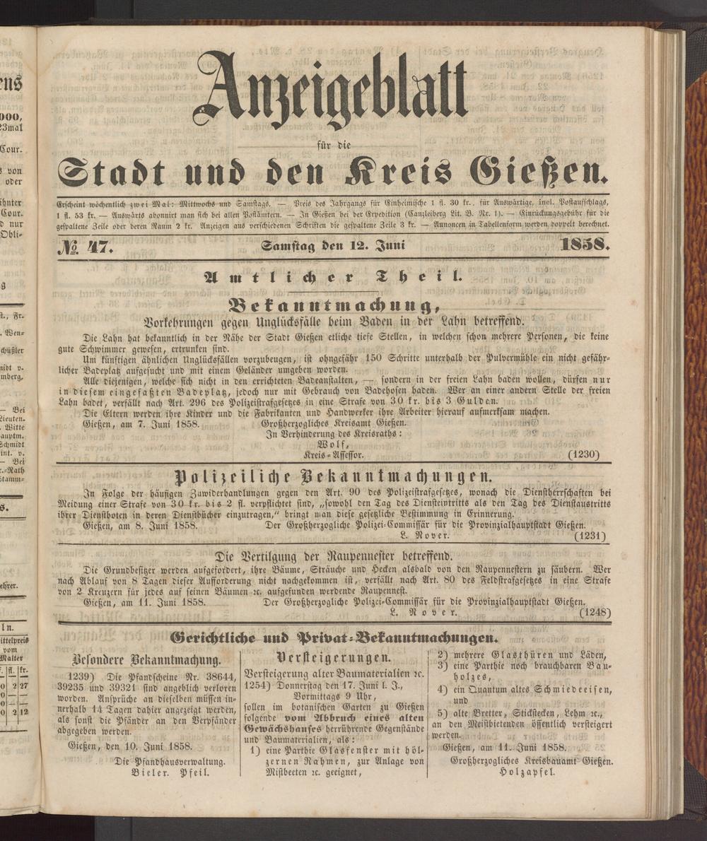 Anzeigeblatt für die Provinzialhauptstadt Gießen. 1840-1867