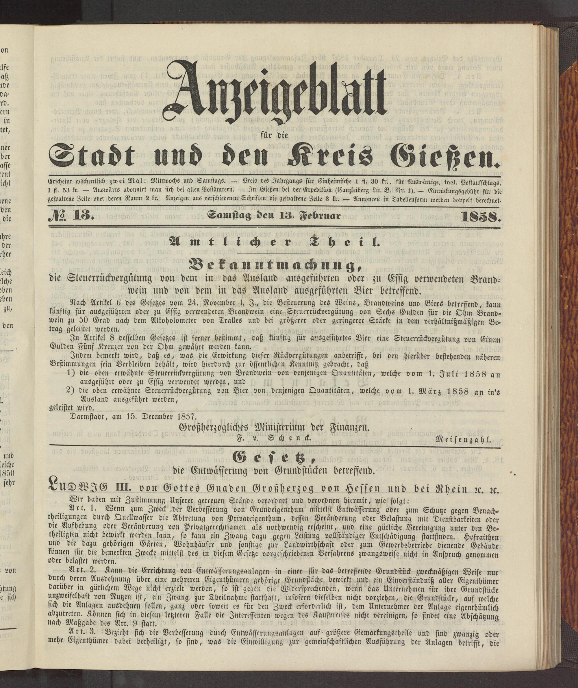 Anzeigeblatt für die Provinzialhauptstadt Gießen. 1840-1867
