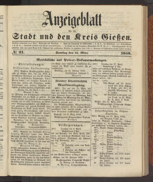 Anzeigeblatt für die Provinzialhauptstadt Gießen. 1840-1867