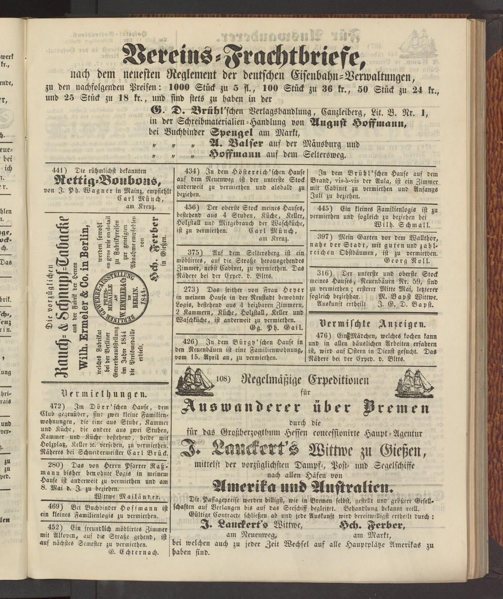 Anzeigeblatt für die Provinzialhauptstadt Gießen. 1840-1867
