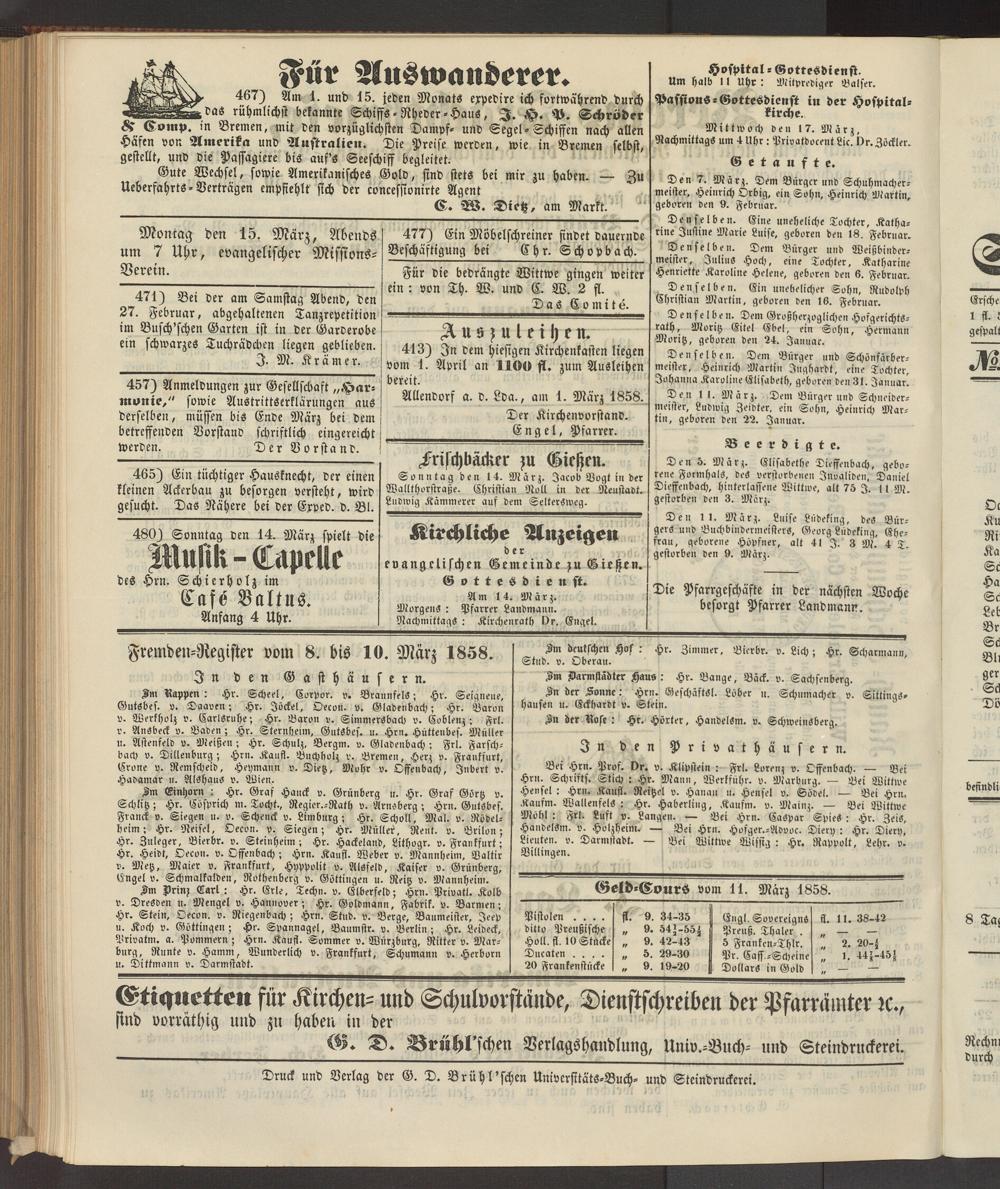 Anzeigeblatt für die Provinzialhauptstadt Gießen. 1840-1867