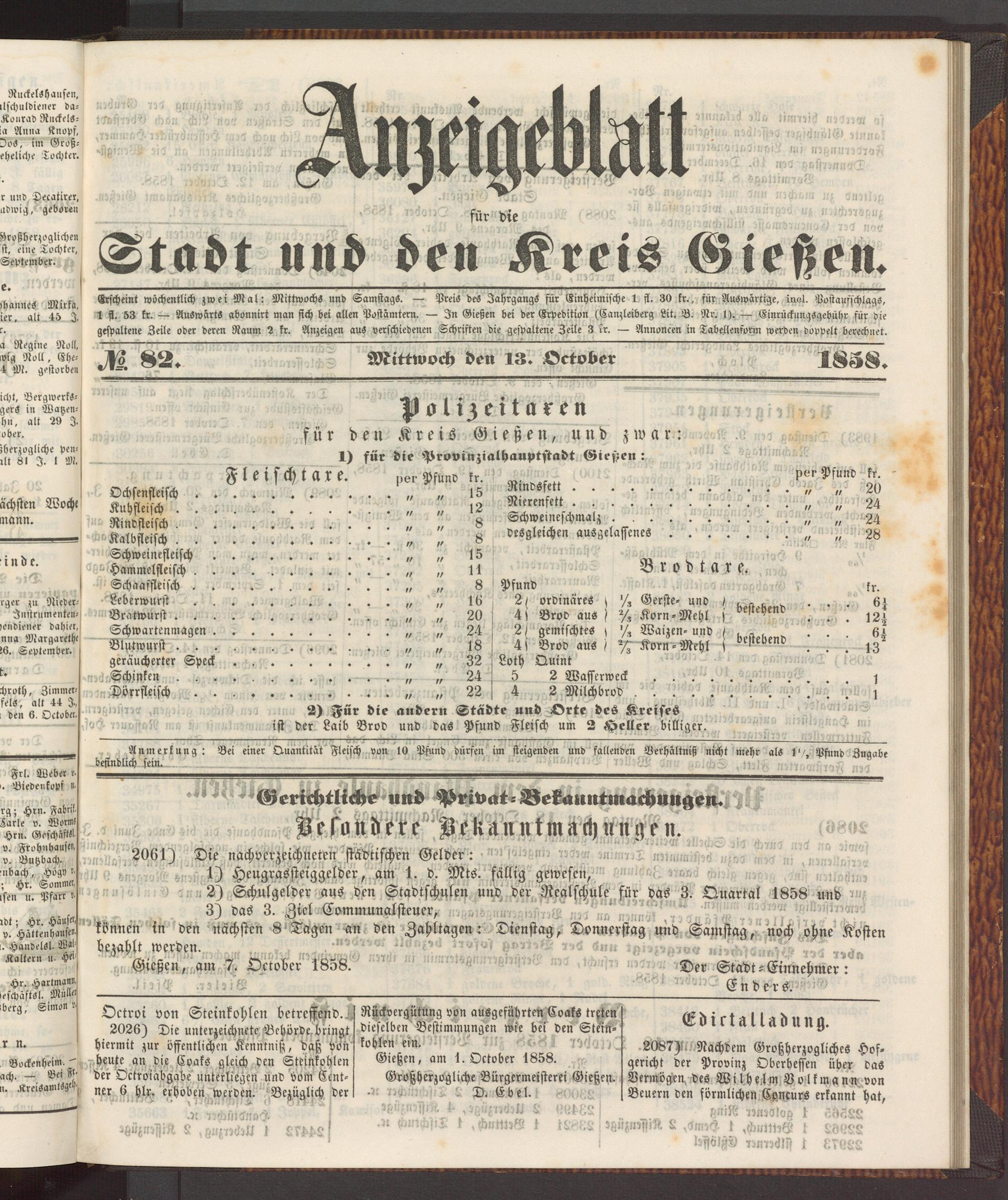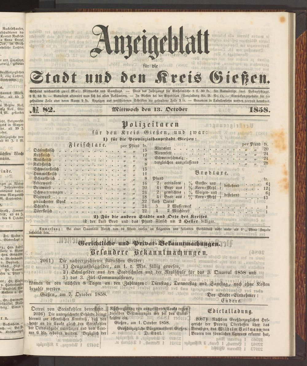 Anzeigeblatt für die Provinzialhauptstadt Gießen. 1840-1867