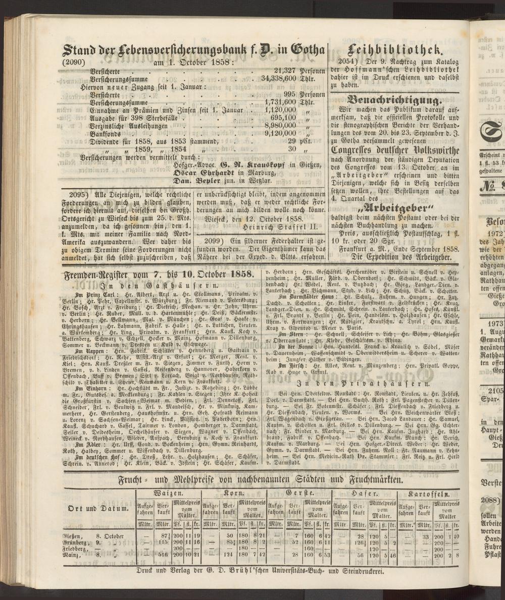 Anzeigeblatt für die Provinzialhauptstadt Gießen. 1840-1867
