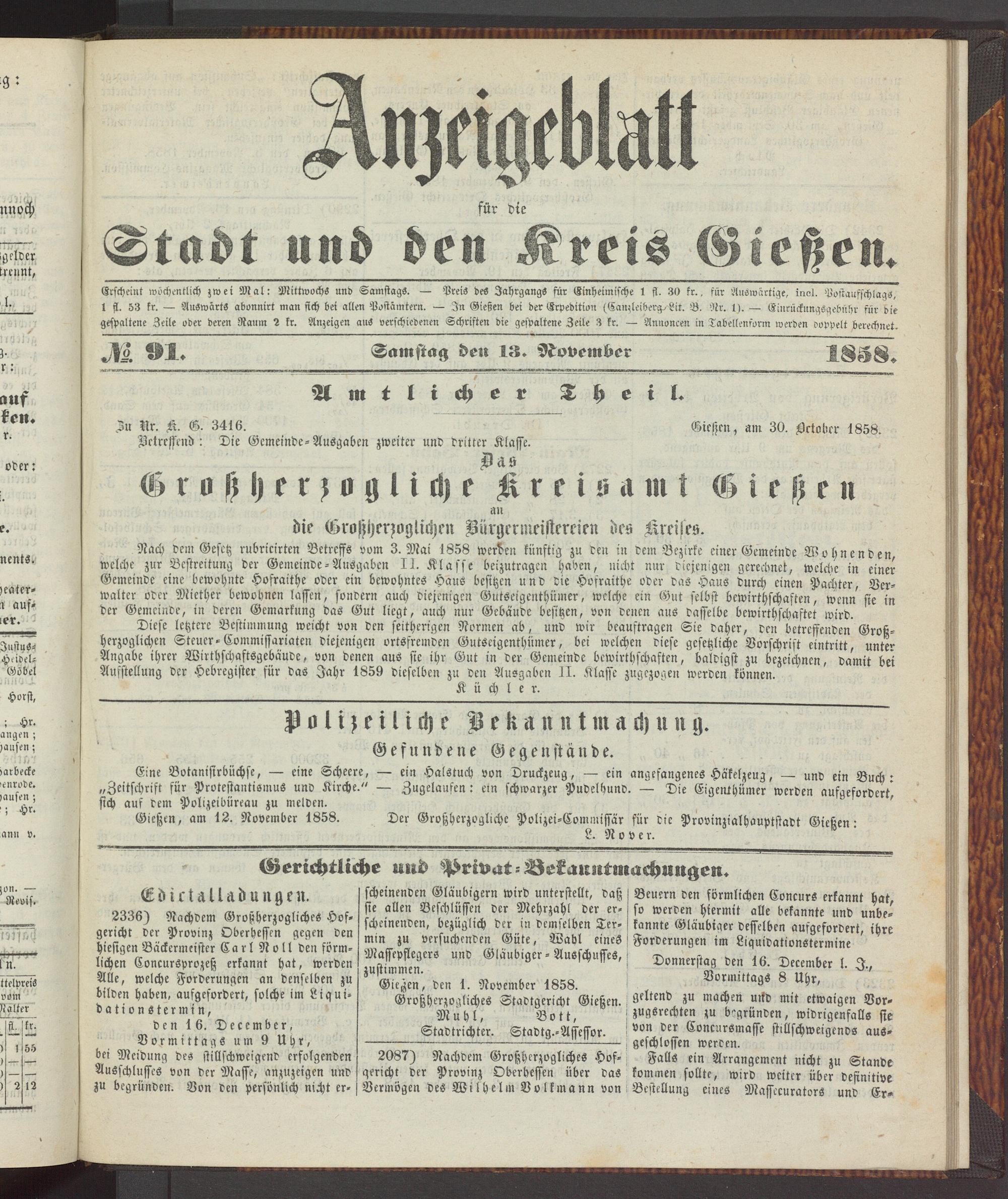Anzeigeblatt für die Provinzialhauptstadt Gießen. 1840-1867