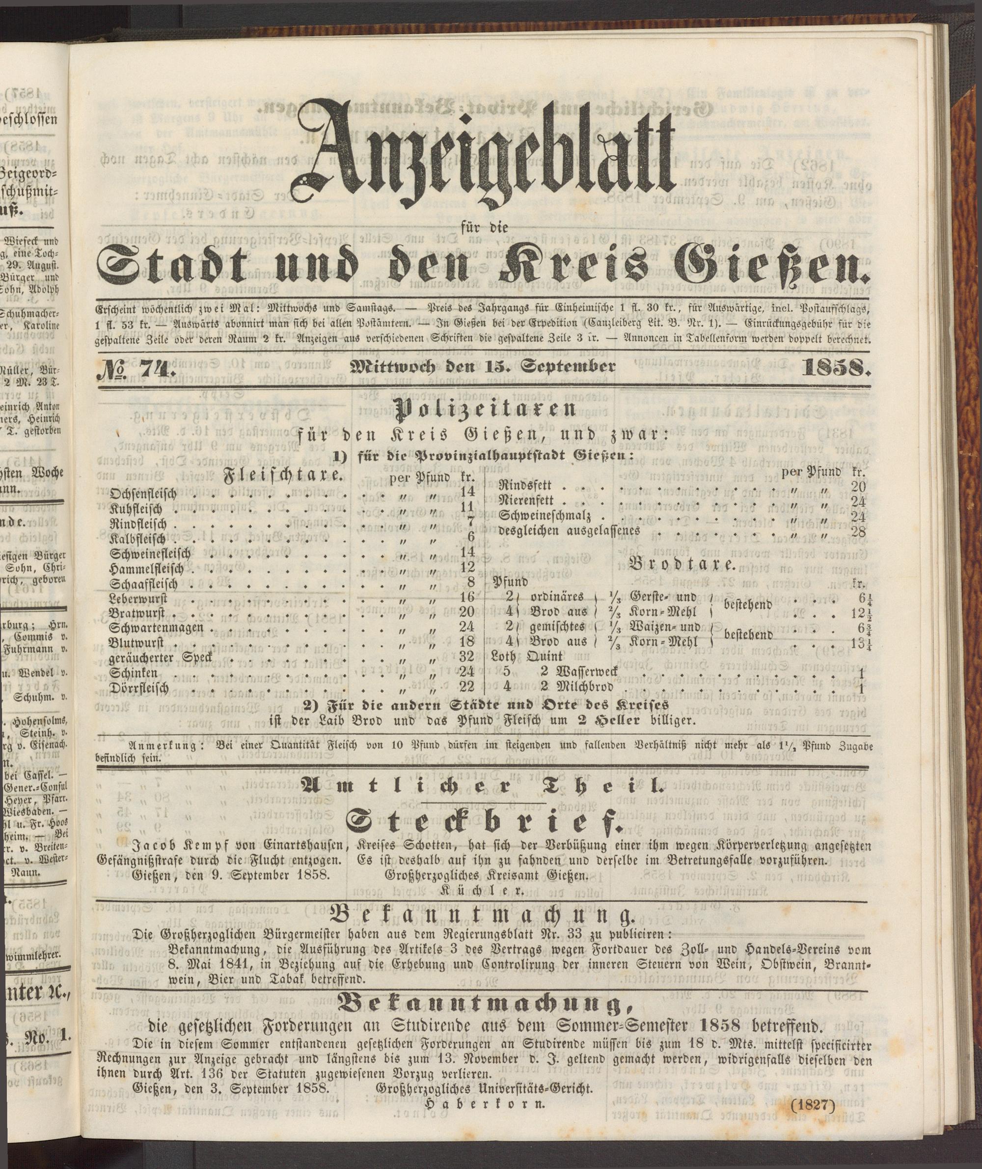 Anzeigeblatt für die Provinzialhauptstadt Gießen. 1840-1867