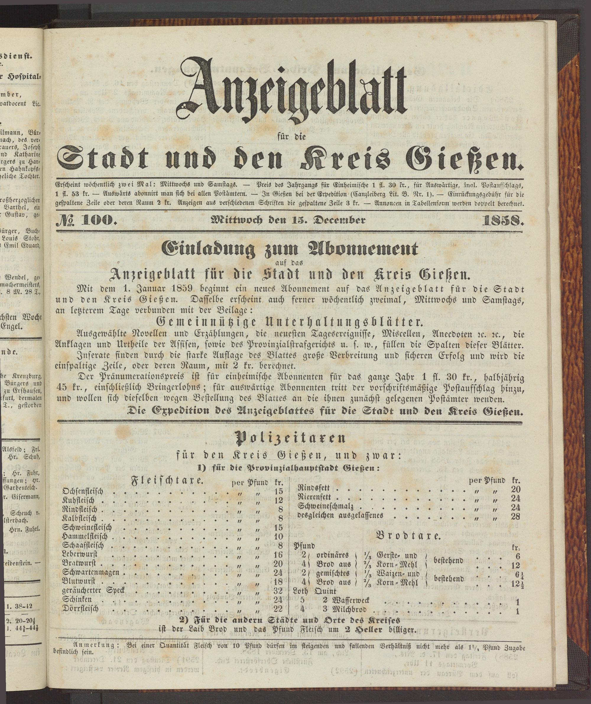 Anzeigeblatt für die Provinzialhauptstadt Gießen. 1840-1867