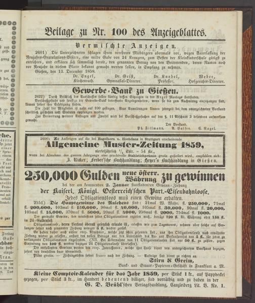 Anzeigeblatt für die Provinzialhauptstadt Gießen. 1840-1867