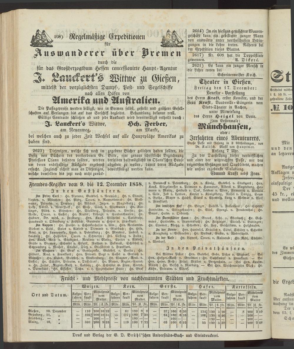 Anzeigeblatt für die Provinzialhauptstadt Gießen. 1840-1867