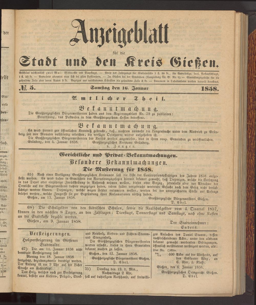 Anzeigeblatt für die Provinzialhauptstadt Gießen. 1840-1867