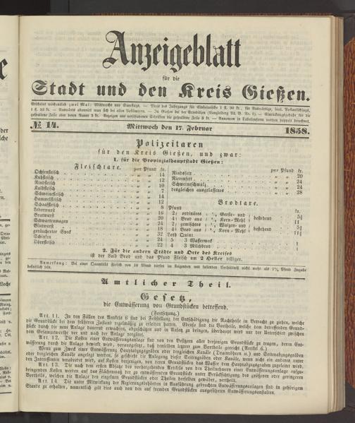Anzeigeblatt für die Provinzialhauptstadt Gießen. 1840-1867