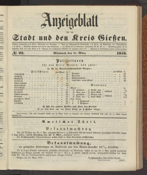 Anzeigeblatt für die Provinzialhauptstadt Gießen. 1840-1867