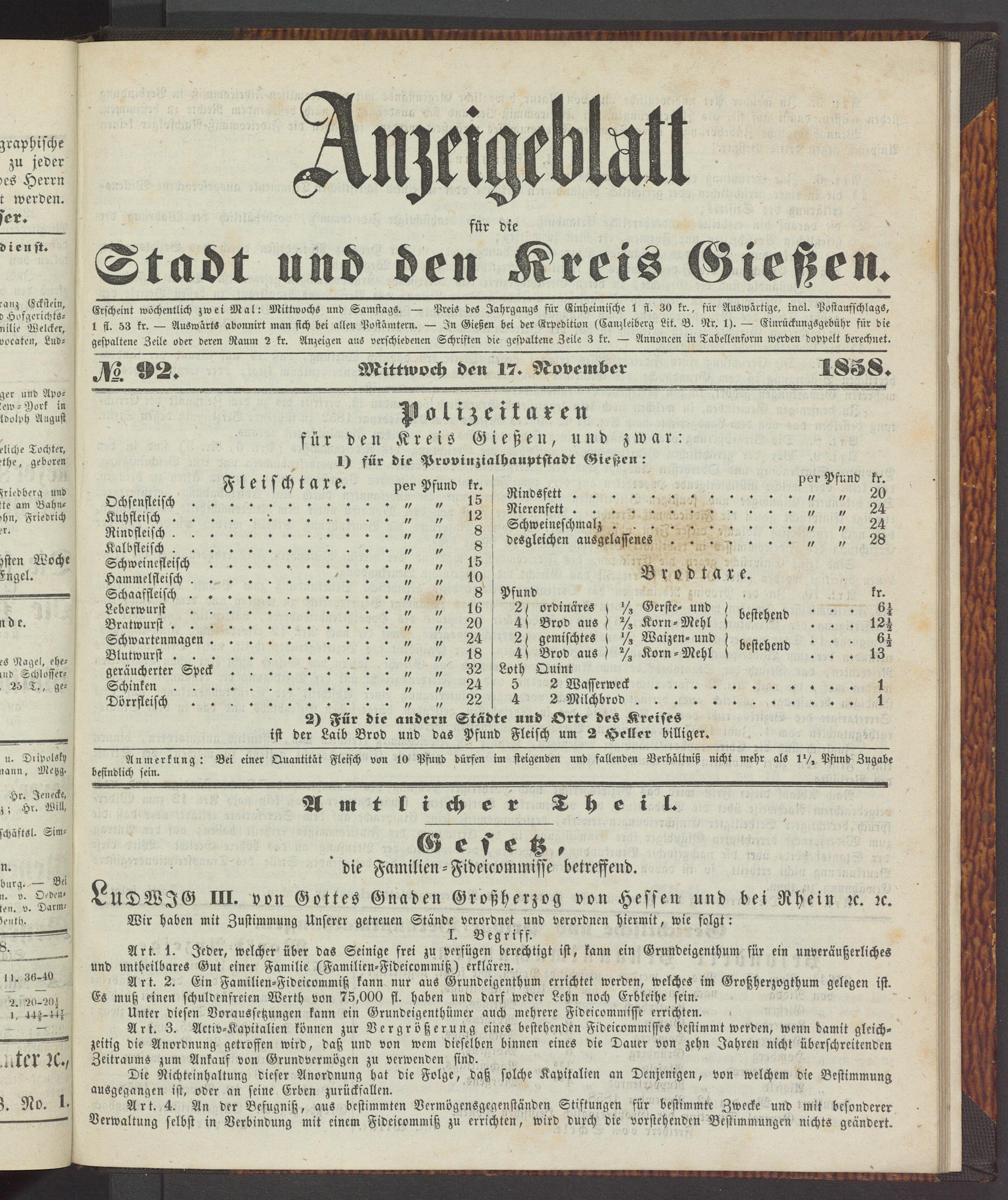 Anzeigeblatt für die Provinzialhauptstadt Gießen. 1840-1867