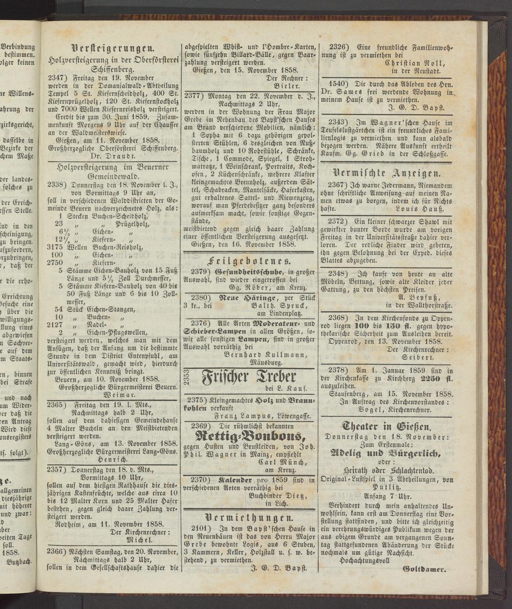 Anzeigeblatt für die Provinzialhauptstadt Gießen. 1840-1867