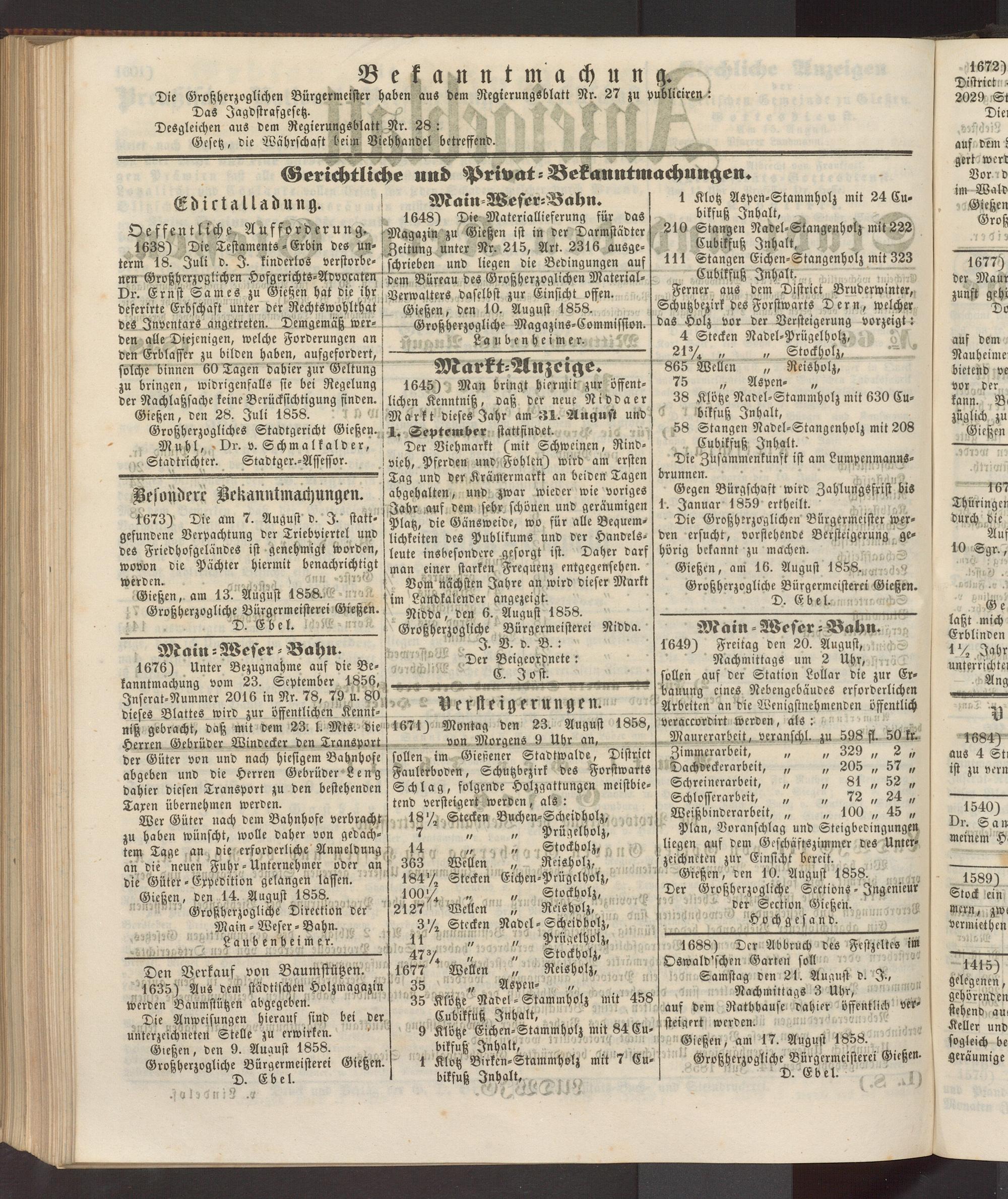 Anzeigeblatt für die Provinzialhauptstadt Gießen. 1840-1867