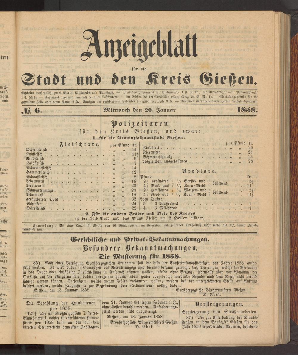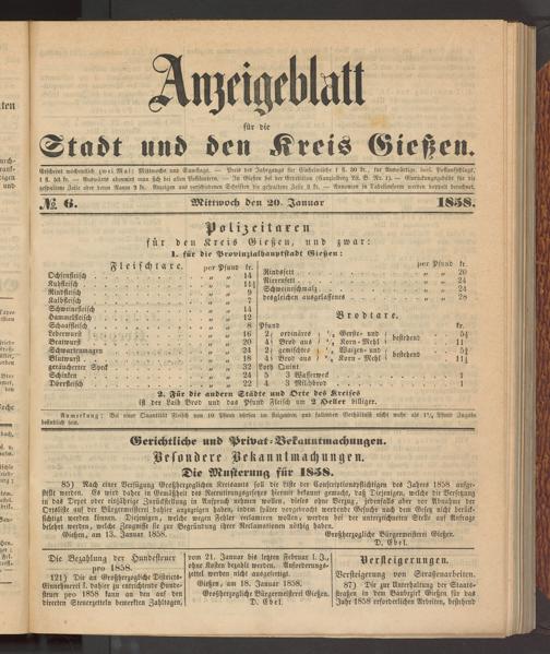 Anzeigeblatt für die Provinzialhauptstadt Gießen. 1840-1867