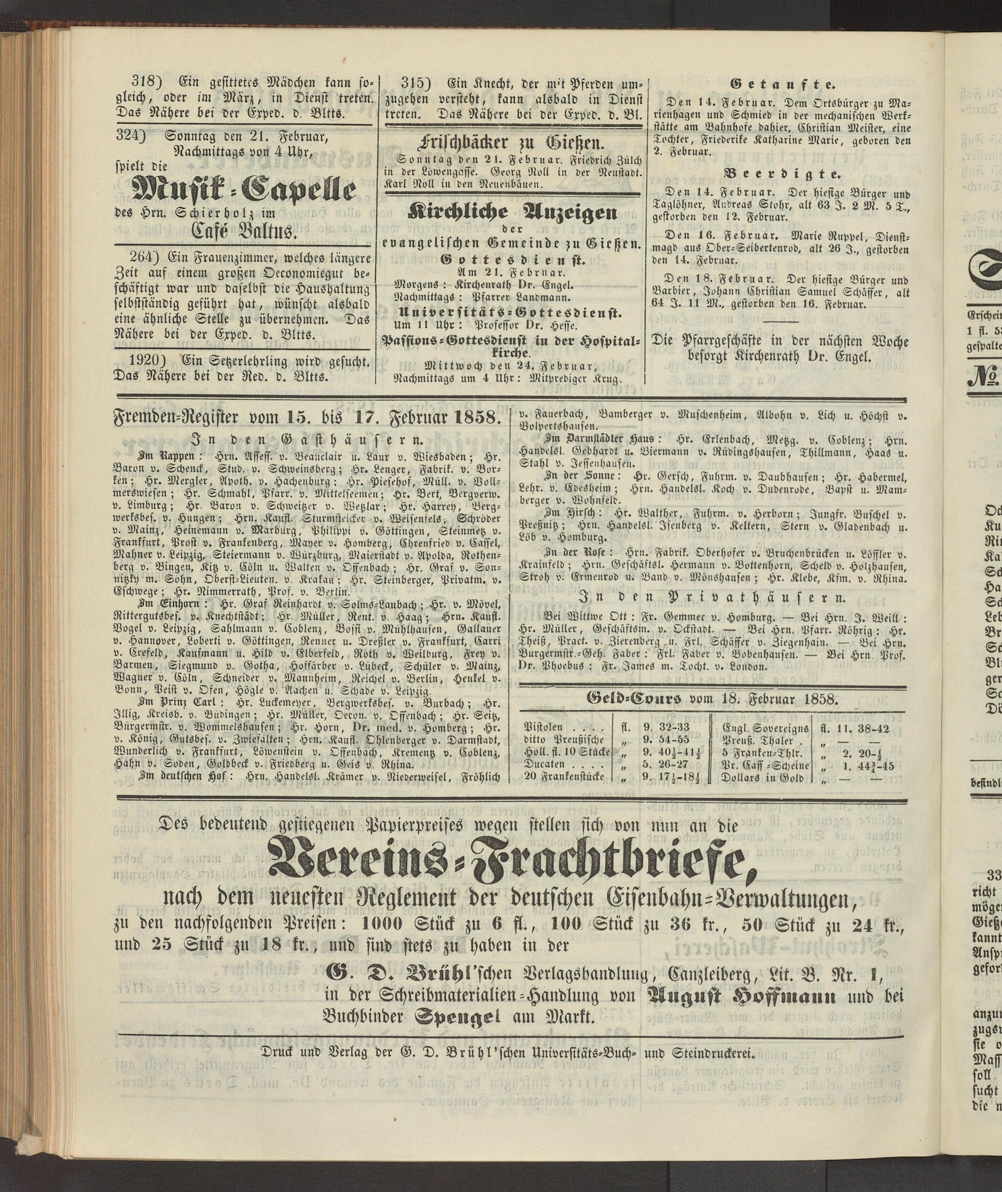 Anzeigeblatt für die Provinzialhauptstadt Gießen. 1840-1867