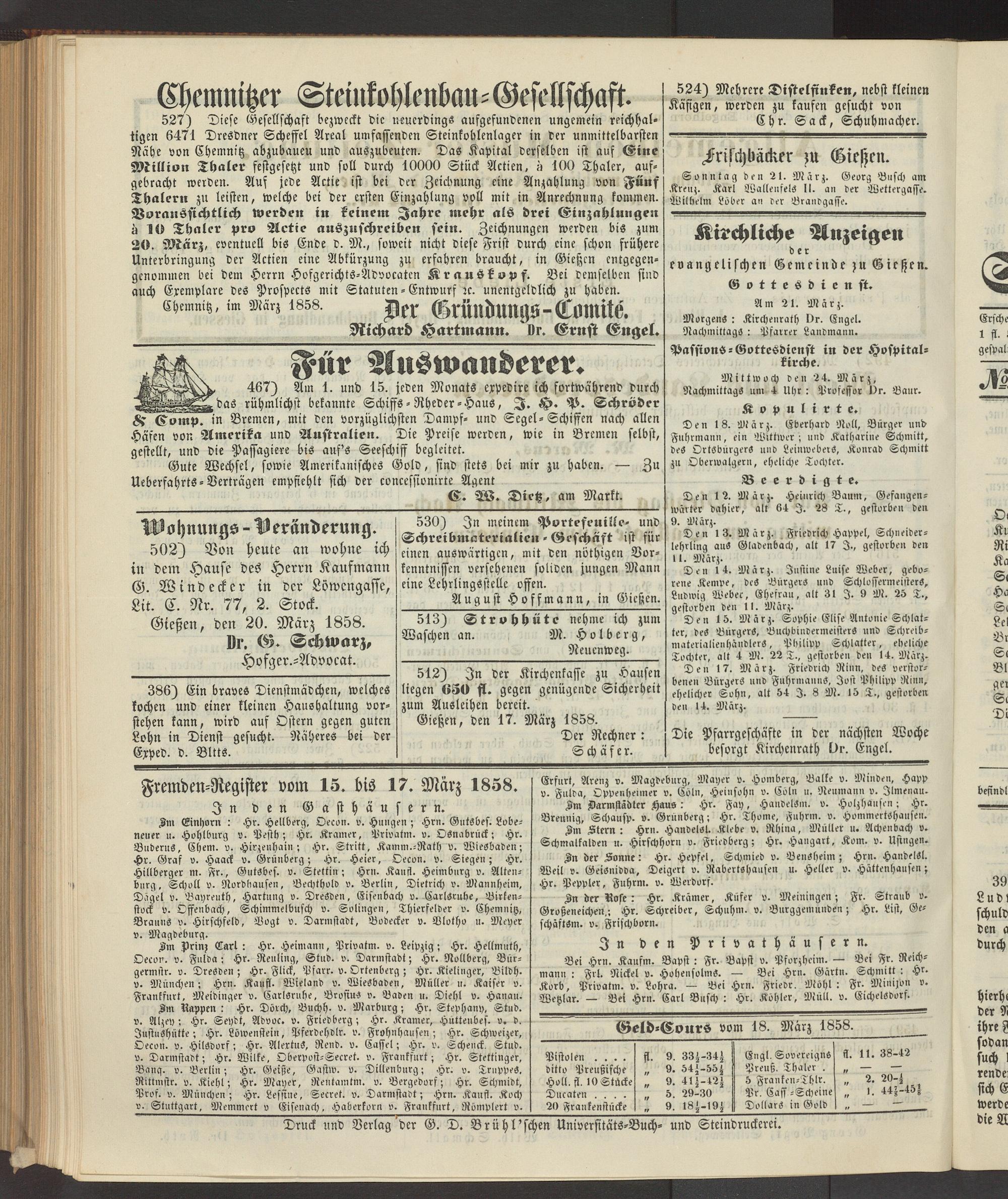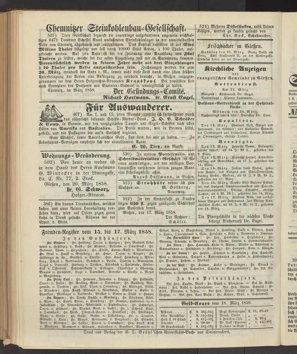 Anzeigeblatt für die Provinzialhauptstadt Gießen. 1840-1867