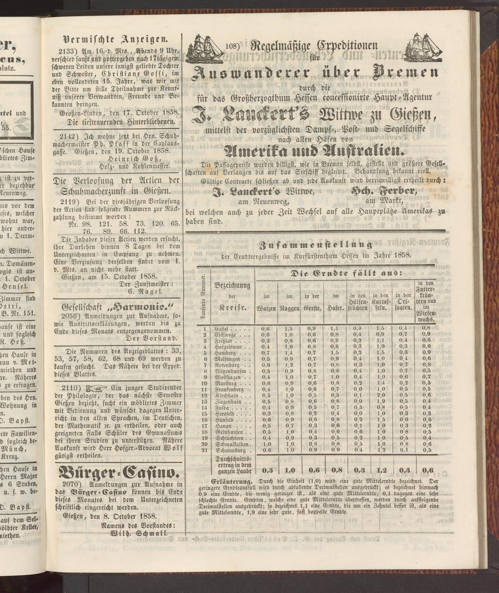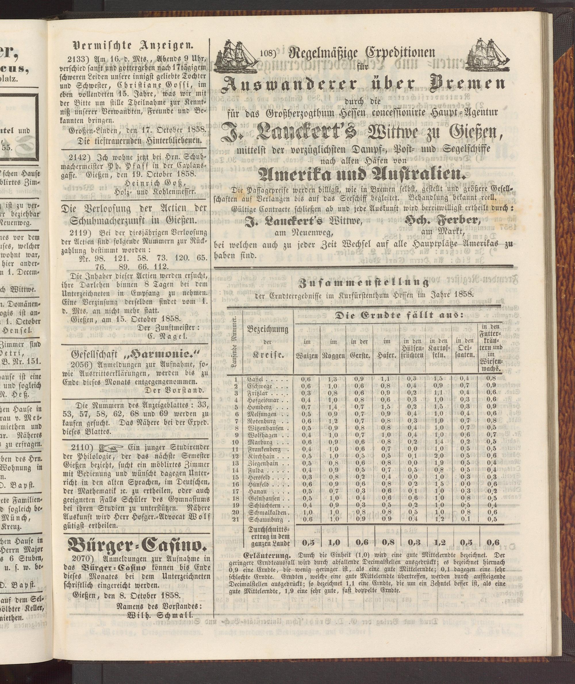 Anzeigeblatt für die Provinzialhauptstadt Gießen. 1840-1867