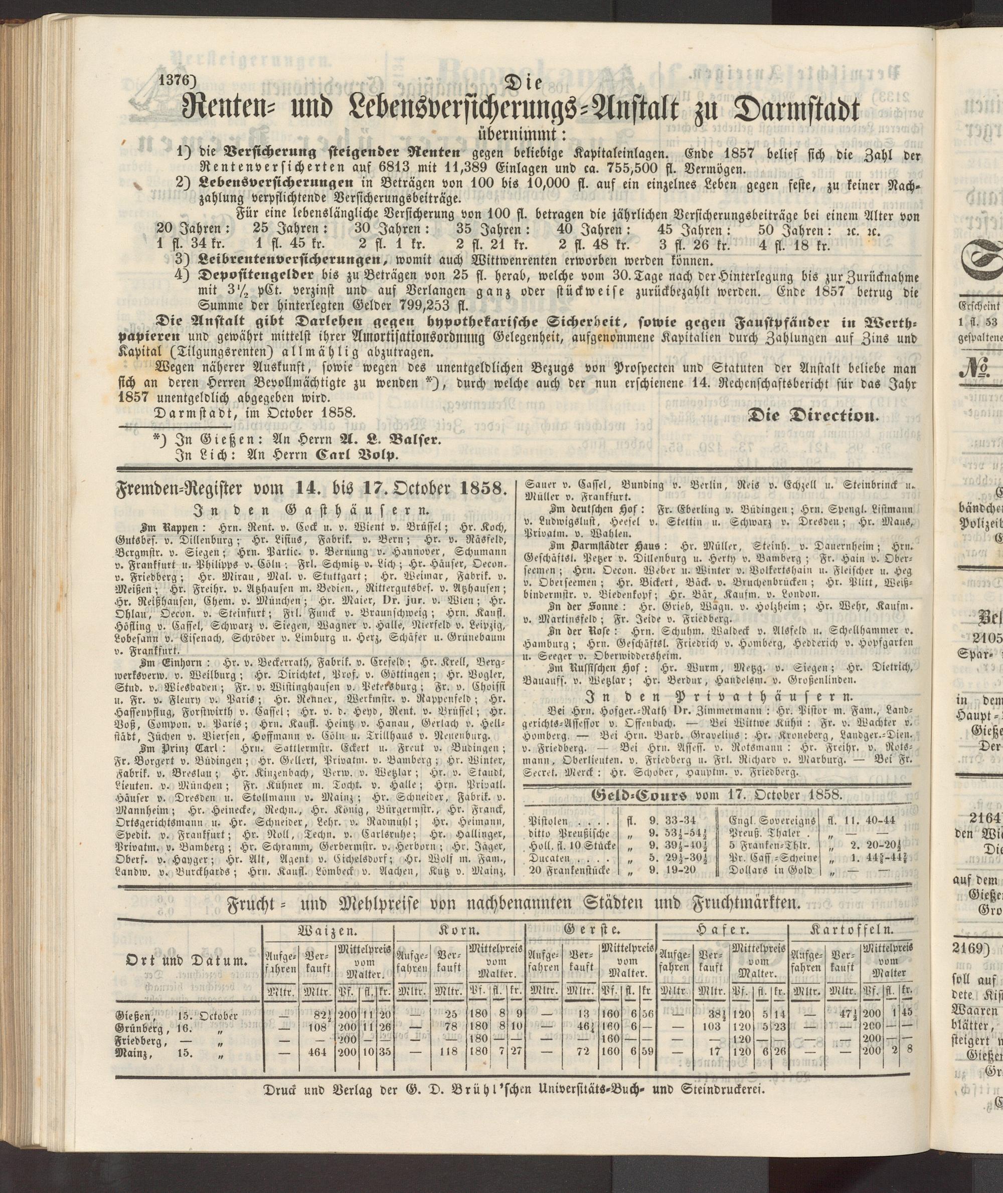 Anzeigeblatt für die Provinzialhauptstadt Gießen. 1840-1867