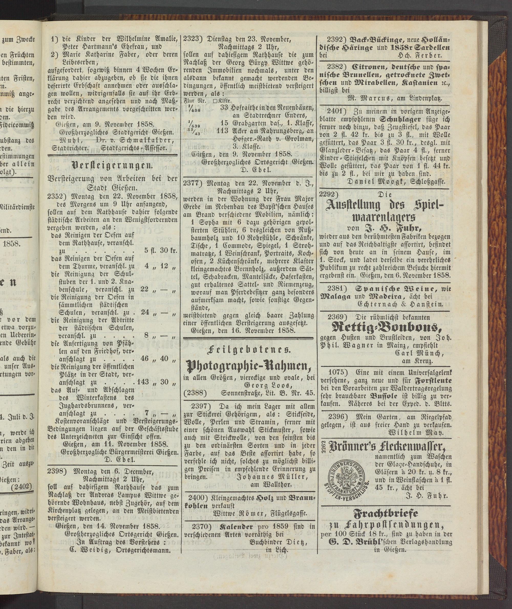 Anzeigeblatt für die Provinzialhauptstadt Gießen. 1840-1867