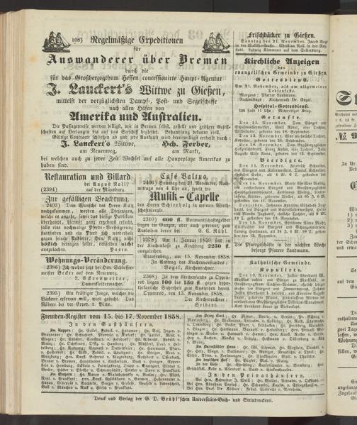 Anzeigeblatt für die Provinzialhauptstadt Gießen. 1840-1867