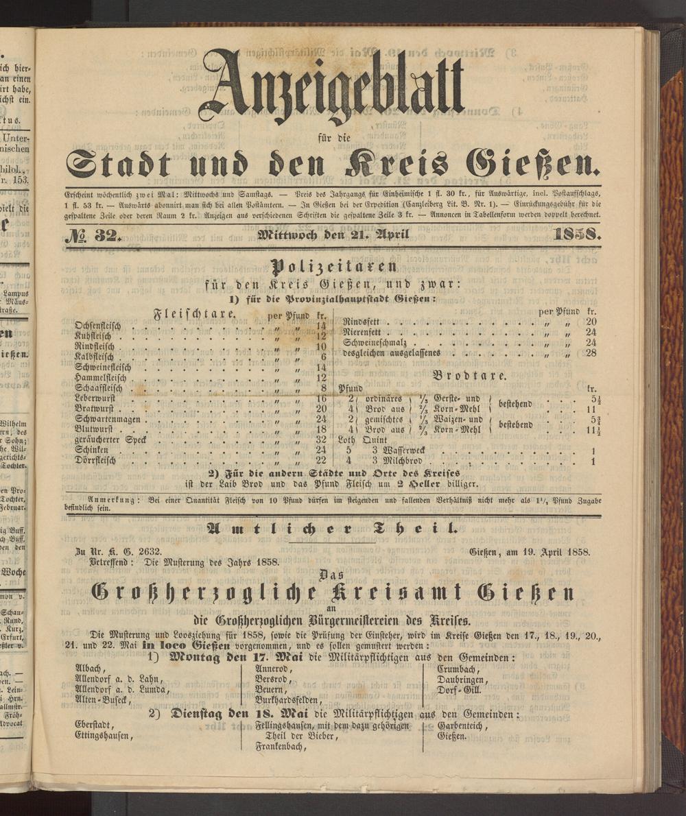 Anzeigeblatt für die Provinzialhauptstadt Gießen. 1840-1867