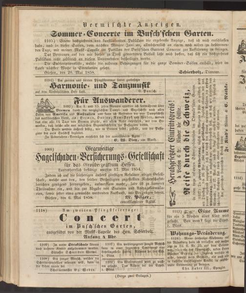 Anzeigeblatt für die Provinzialhauptstadt Gießen. 1840-1867