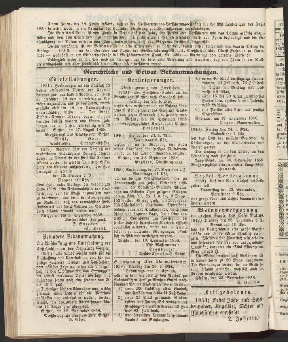 Anzeigeblatt für die Provinzialhauptstadt Gießen. 1840-1867
